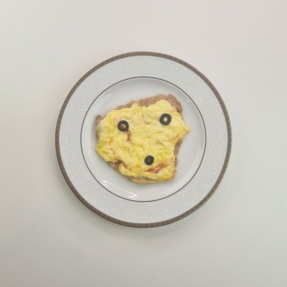 Свинина, сыр, майонез, яйцо, маслины, специи.