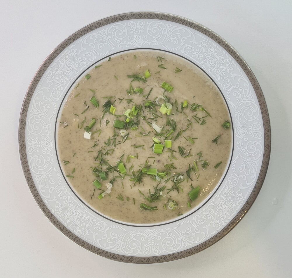 Шампиньоны, картофель, лук, морковь, сливки. специи.