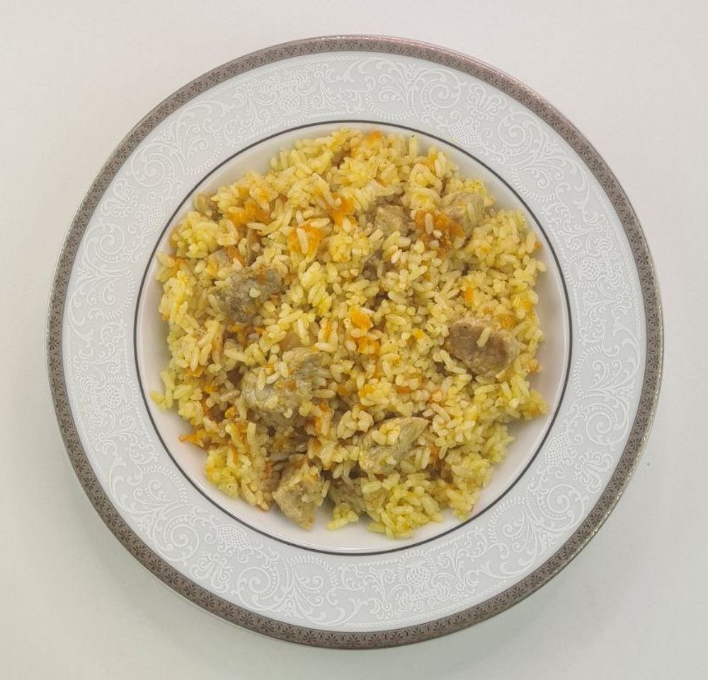Свинина, рис, морковь, лук, растительное масло, специи